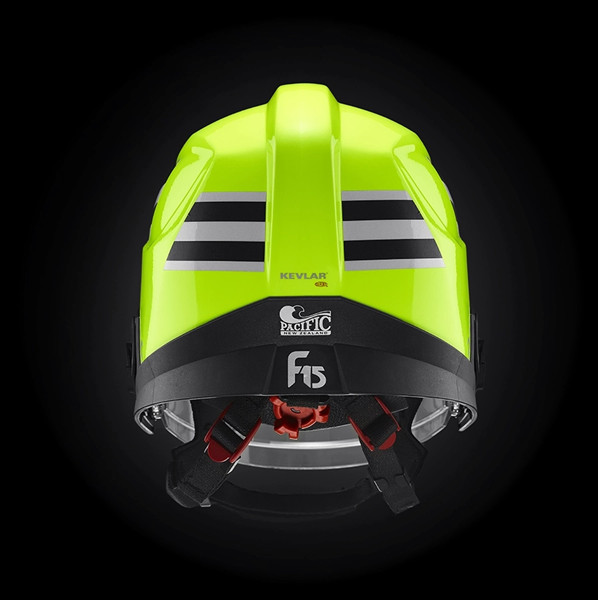 Az F15 héja Dupont™ Kevlar® és üvegszál kompozit anyagból készült, amely kiváló ütés- és áthatolásvédelmet biztosít, miközben vegyszer-, UV-, hő- és lángálló. A héjat ultrahangos hegesztéssel egy fejlett polimer alvázra hegesztik, ötvözve a Pacific héj bizonyított szilárdságát egy olyan platformmal, amely lehetővé teszi olyan kiegészítők integrálását, mint a kommunikáció, a világítás, a hőkamerák és a légzésvédő maszkok.